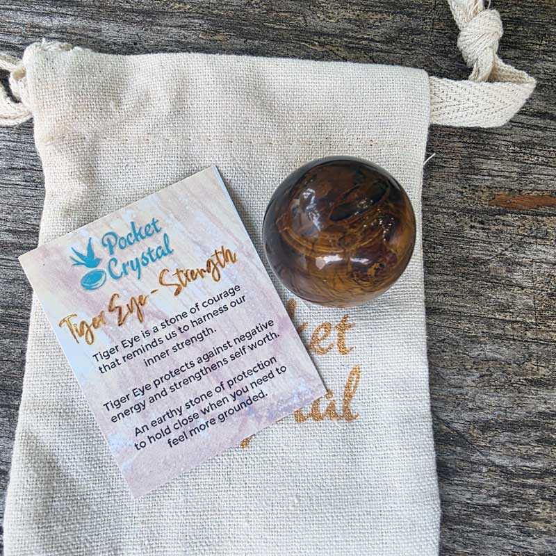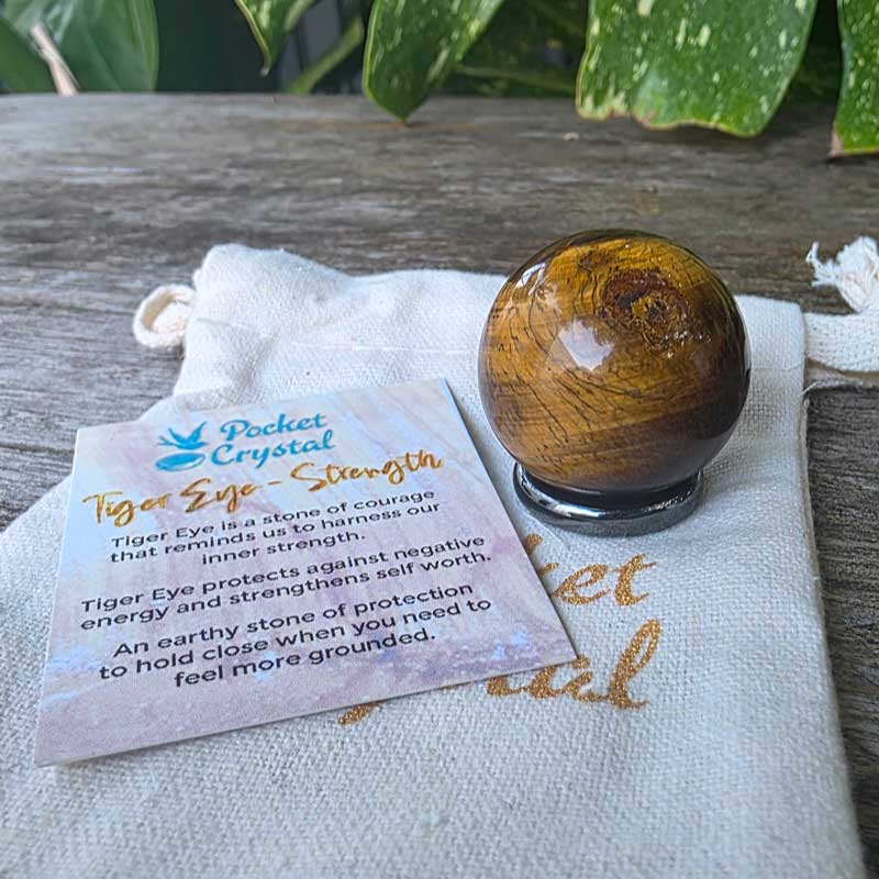 Tiger Eye Pocket Crystal Sphere & Stand - Strength