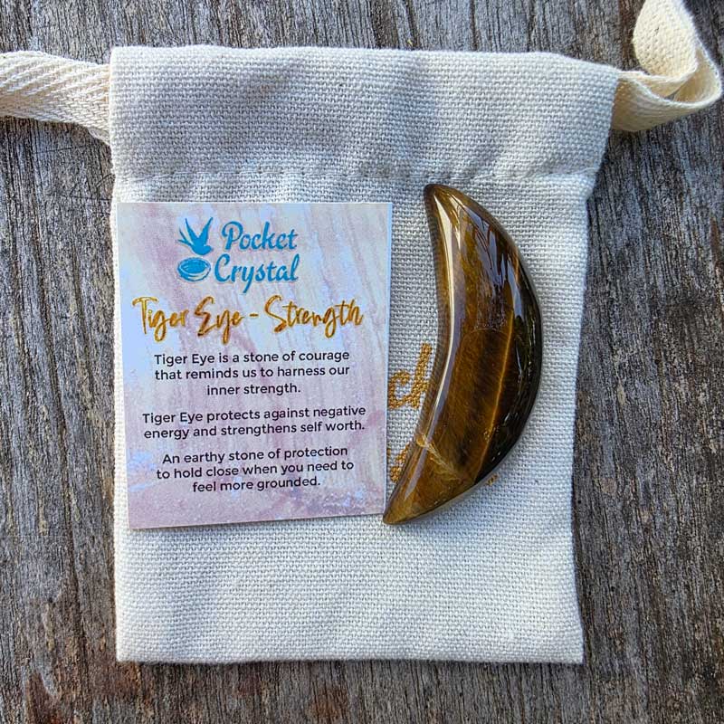 Tiger Eye Pocket Crystal Moon - Strength
