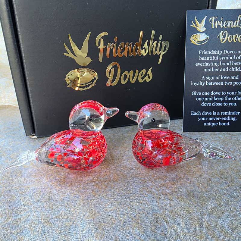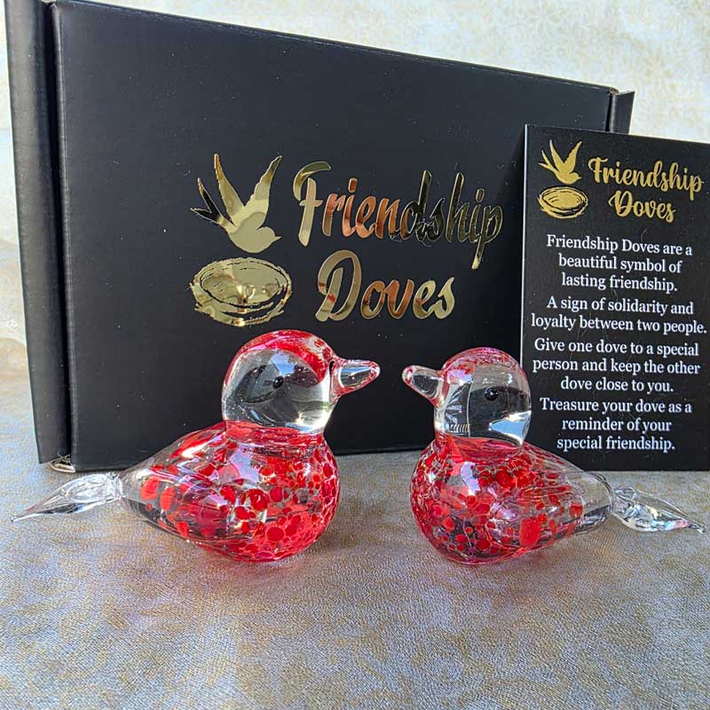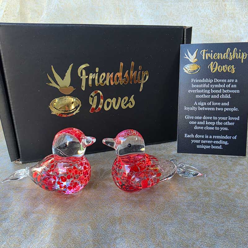 - Includes 2 x glass handmade friendship doves in gift box nest, 2 x affirmation cards & pouch for 2nd dove