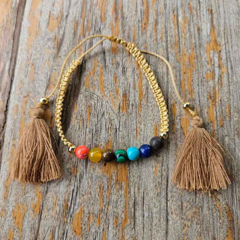 7 Chakra Natural Stone Beaded Adjustable Bracelet