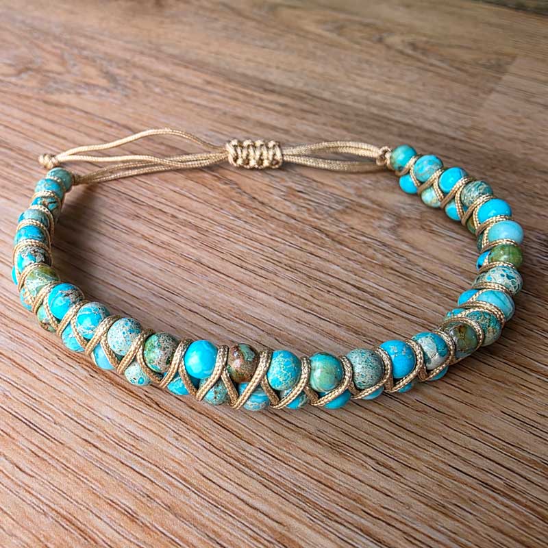 This is a pretty Friendship Bracelet made from small beads and is fully adjustable to all wrist sizes. Can also be worn as an anklet. These bracelets work perfectly on their own, or layered into beautiful stacks to create a more dramatic look.
