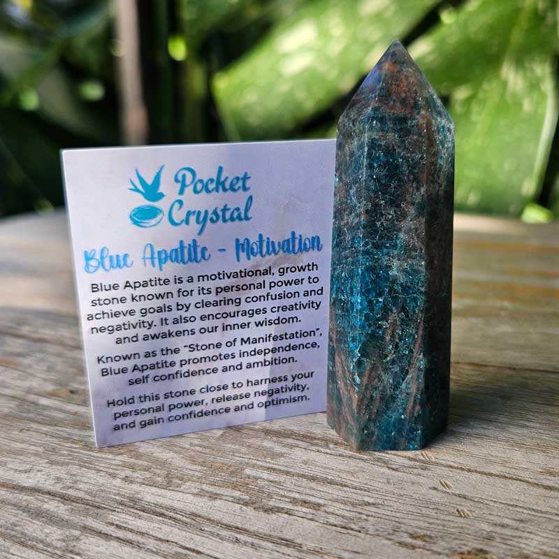 Blue Apatite Pocket Crystal Point Wand - Motivation