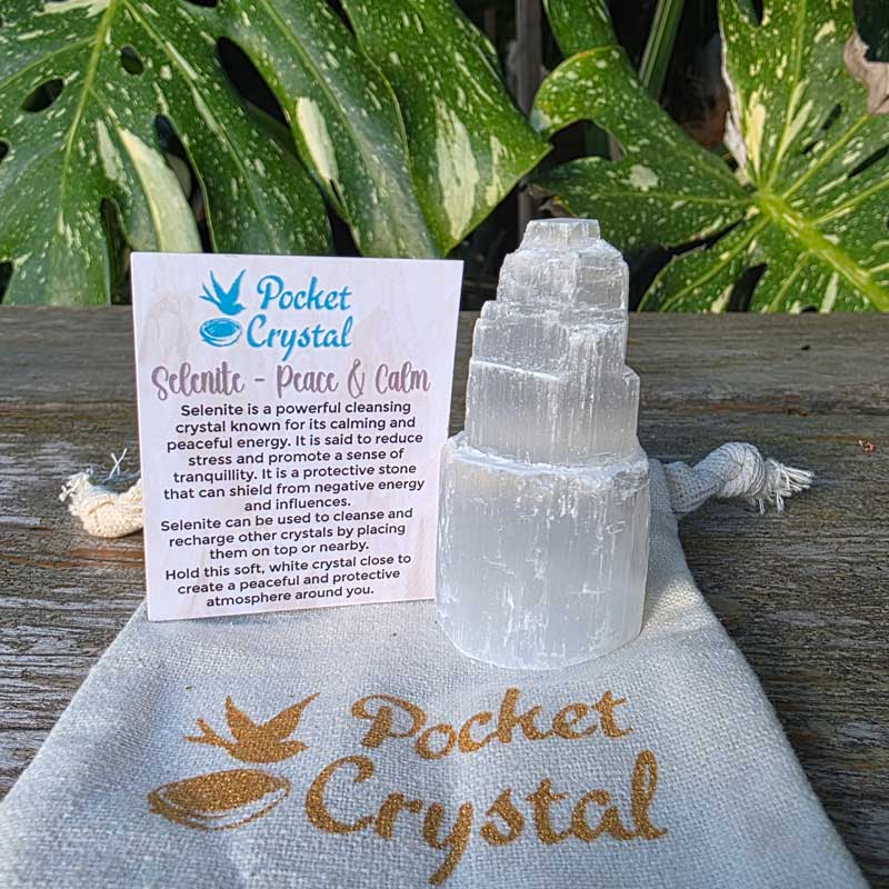 Selenite Pocket Crystal Mini Tower - Peace & Calm