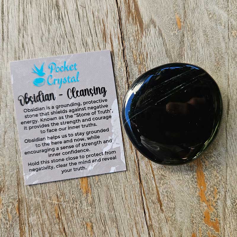 Obsidian Pocket Crystal Palm Stone - Cleansing