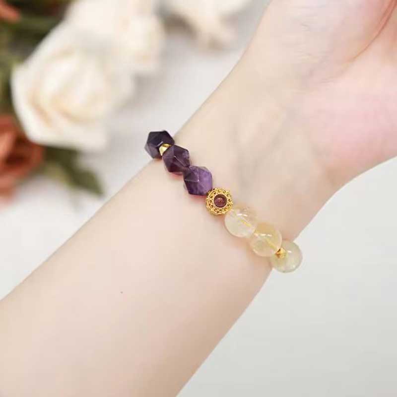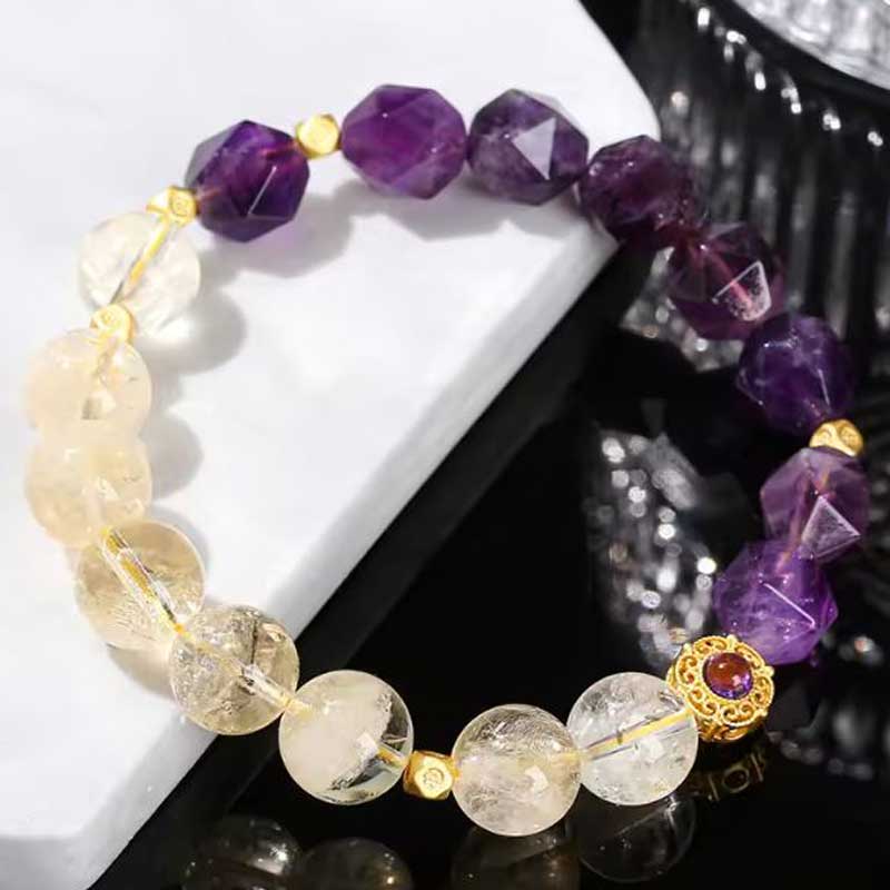 Amethyst & Citrine Faceted Crystal Stretch Bracelet