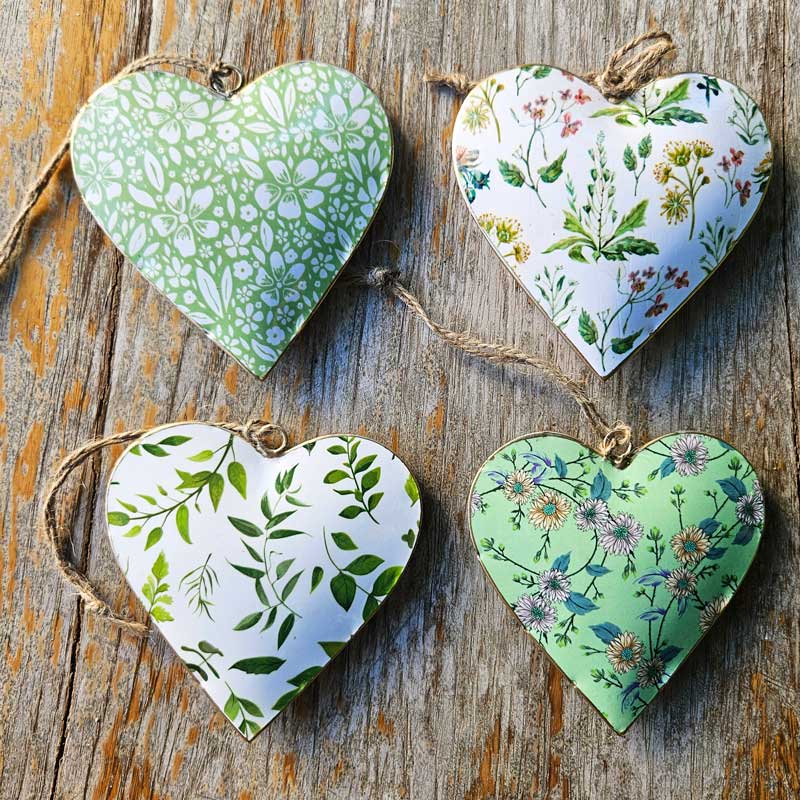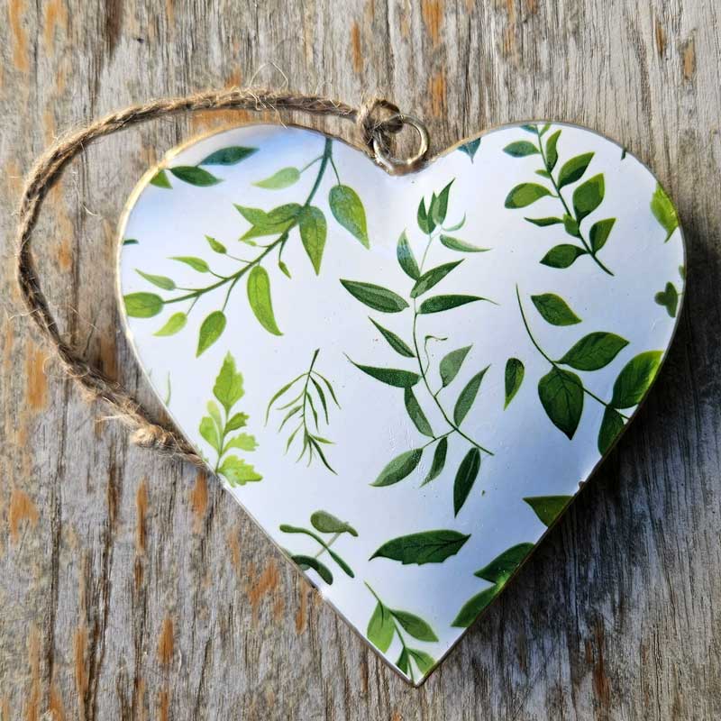 A lovely vintage style hanging heart ornament in a pretty pastel green leaf design!