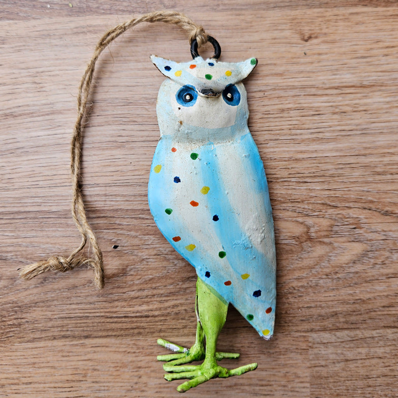 A lovely handcrafted hanging owl ornament in a bright and cheerful design! This cute and quirky owl has been handpainted so each piece is unique.