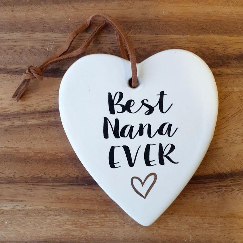 A cute hanging heart ornament that is the perfect little gift for your beloved nana.