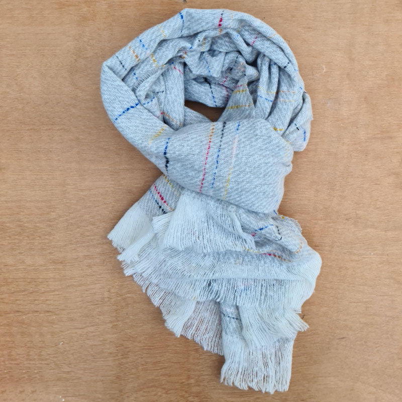 A very pretty scarf in a lovely soft grey with small splashes of subtle colour.